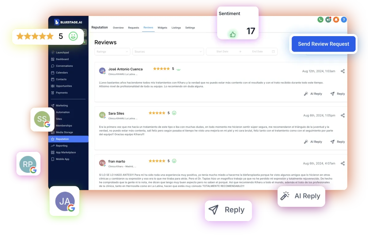 Send review requests via SMS and email with the push of a button. Monitor and reply to new reviews right within the dashboard.